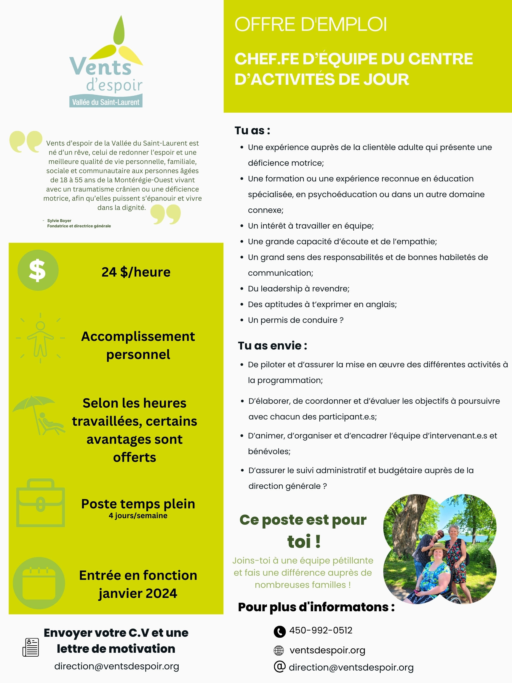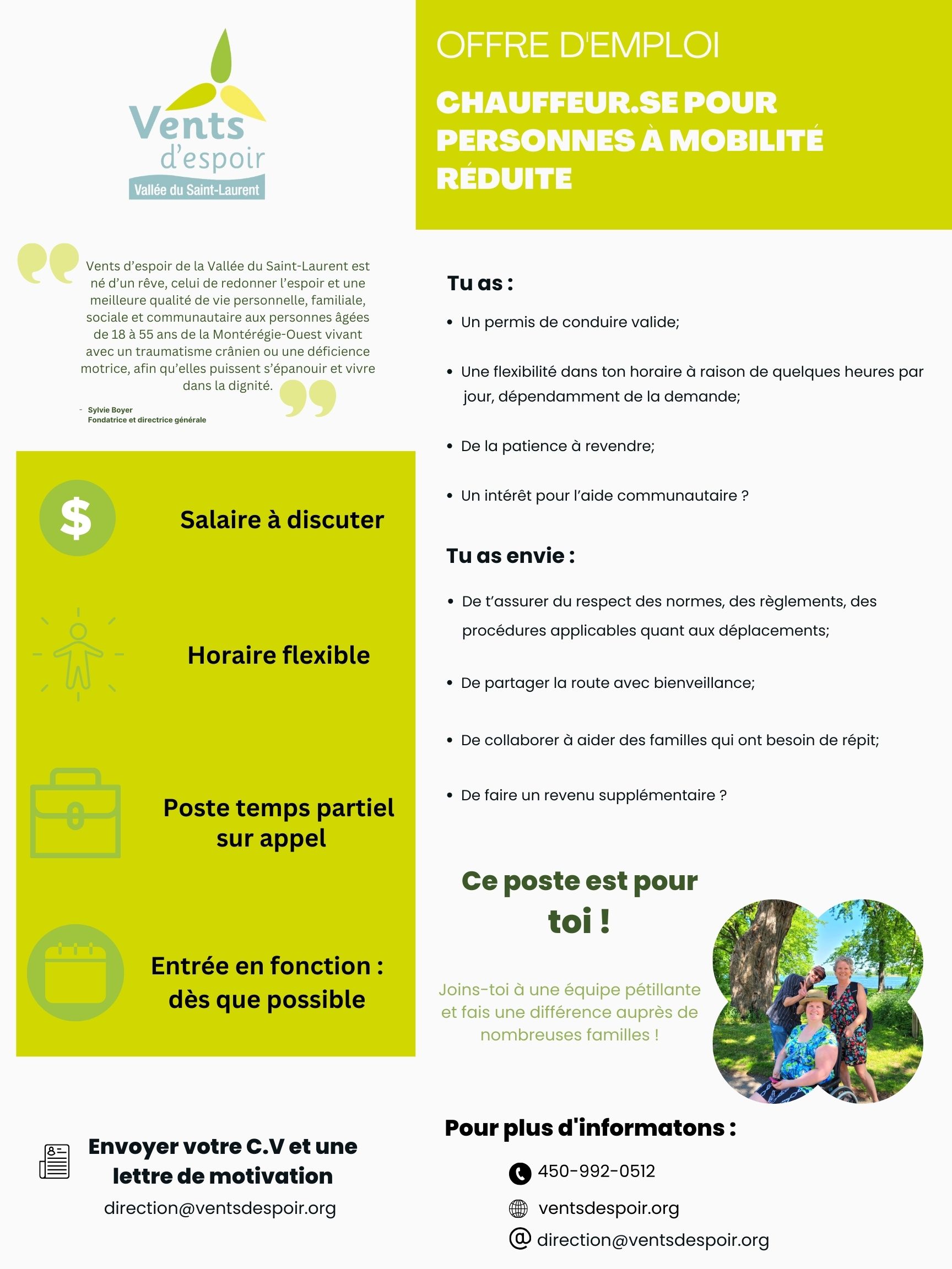Plusieurs postes disponibles – Vents d’espoir de la Vallée du Saint-Laurent